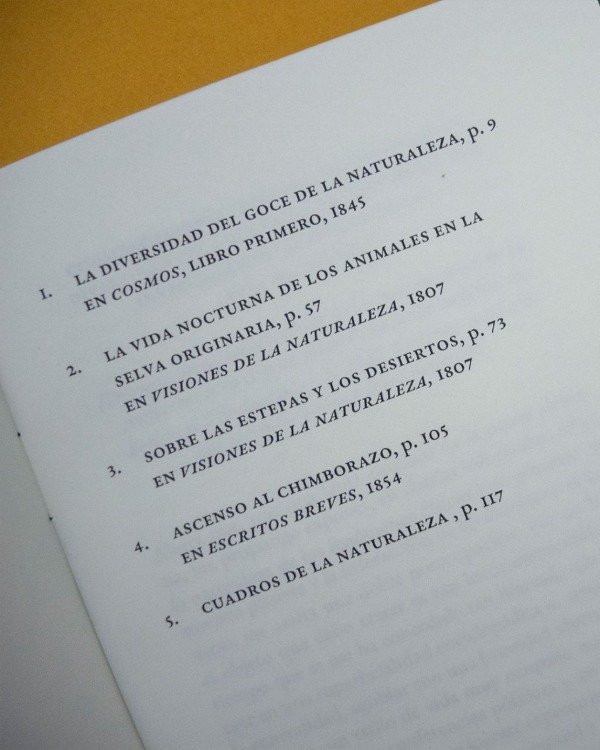 Una visión del todo natural recoge una serie de escritos de Humboldt (naturalista y explorador -sobre todo de América- alemán) que revelan su objetivo: ser fiel a la naturaleza. Pero esa fidelidad está tan cerca de la ciencia como del arte, no en vano han denominado a sus escritos “obras de arte científicas”. Poder ser fiel a la naturaleza es encarnar un equilibrio, entre el sentimiento, la observación y el razonamiento. La consideración intelectual y el goce estético se expanden y se transforman mutuamente motivados por la comunalidad de la naturaleza, esto es, “en la multiplicidad y en el cambio periódico de los organismos vivos, se renueva incesantemente el misterio original de toda configuración.”